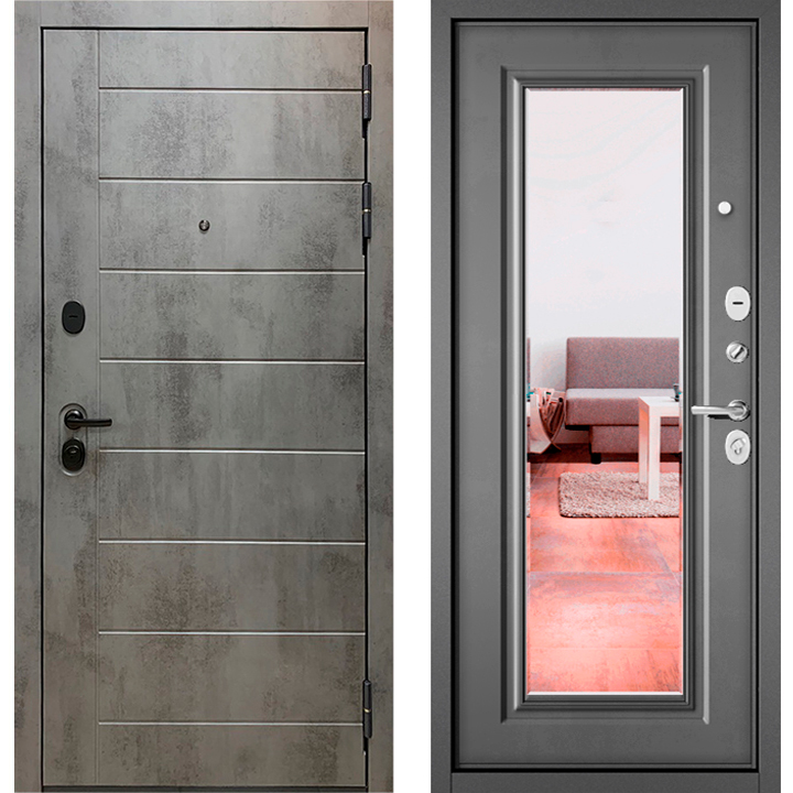 Входная дверь TRUST MASS-90 Бетон темный 9S-136/Бетон серый 9S-140, зеркало