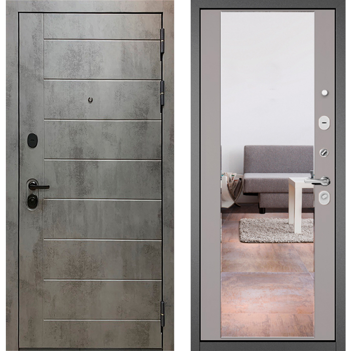 Входная дверь TRUST MASS-90 Бетон темный 9S-136/Эмаль светло-серая 9S-164, зеркало