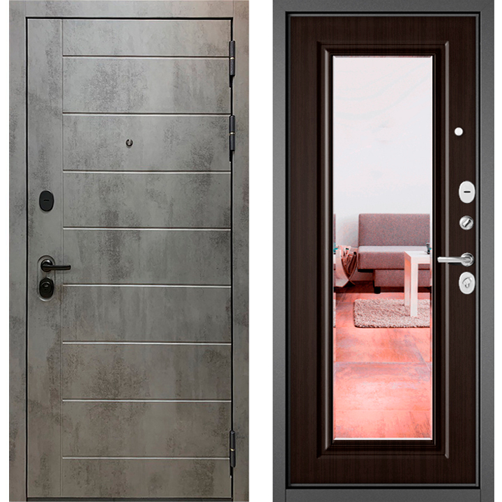 Входная дверь TRUST MASS-90 Бетон темный 9S-136/Ларче шоколад 9S-140, зеркало