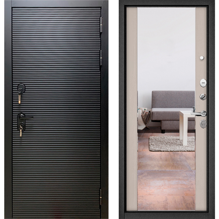 Входная дверь TRUST MASS-90 Черный матовый 9S-161/Дуб шале белый 9S-164, зеркало