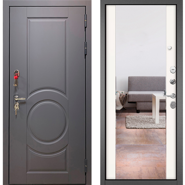 Входная дверь TRUST STANDART-90 Графит софт 9S-6/Белый софт 9S-164, зеркало