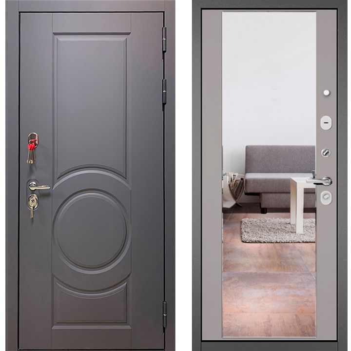 Входная дверь TRUST STANDART-90 Графит софт 9S-6/Эмаль светло-серая 9S-164, зеркало