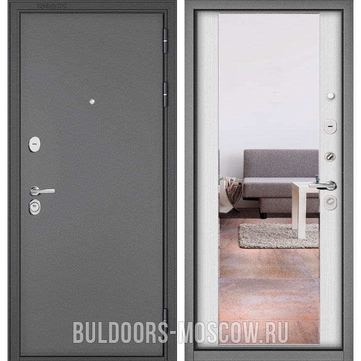Входная дверь TRUST MASS-90 Букле антрацит/Дуб шале белый 9S-164, зеркало