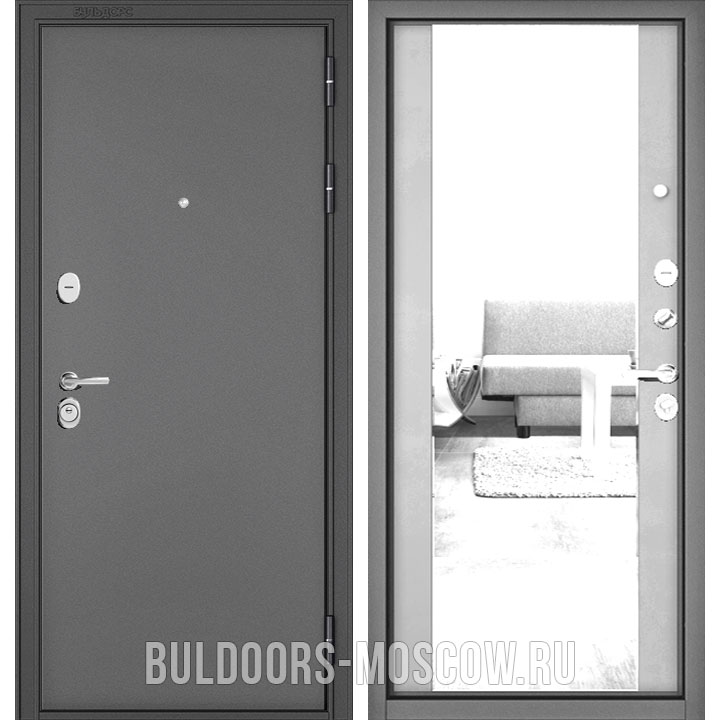 Входная дверь TRUST MASS-90 Букле антрацит/Эмаль светло-серая 9S-164, зеркало