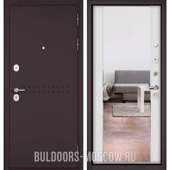 Входная дверь TRUST MASS-90 Букле шоколад R-4/Дуб шале белый 9S-164, зеркало