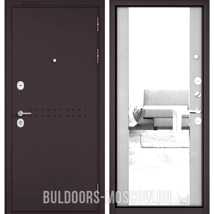 Входная дверь TRUST MASS-90 Букле шоколад R-4/Эмаль светло-серая 9S-164, зеркало
