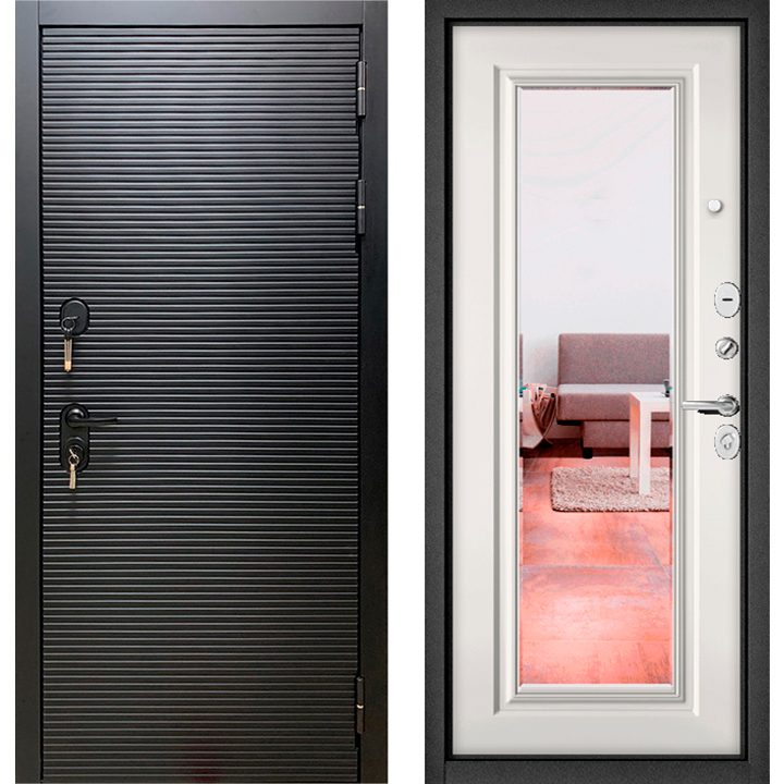 Входная дверь TRUST MASS-90 Черный матовый 9S-161/Белый софт 9S-140, зеркало