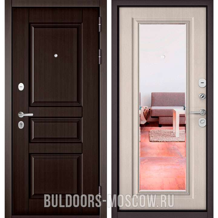 Входная дверь TRUST MASS Ларче шоколад 9SD-2/Ларче бьянко 9S-140, зеркало